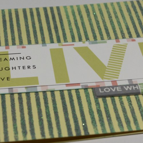 I played around with a few ideas and once I’d got into the geo-groove things started to come together. Initially the cards I found worked best were those which followed a simple mat and layer process. Then I found more uses for the sentiment stamps and I even began to like the embossing powder included in the kit! I rarely use glittery embossing, I rarely use loose glitter! It gets everywhere and I always worry I’ll miss a bit in my clean up and find irresponsible glitter on an inappropriate card. This Wow embossing powder is super fine and it did fly about a bit BUT the effects on different colours was worth it. I appeared silver on green card and gold on an orange base. This made it much more fun that I would have expected.