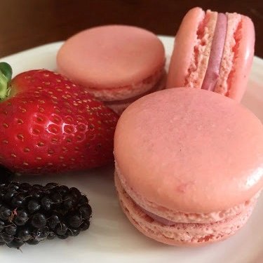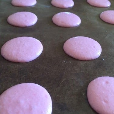I used a tiny quantity of powdered red food colouring and it gave just the right pinky hue above. The powdered colourings are pricey but I've found them more reliable in terms of colour and stability of bake. (Did I mention these are tricky?!) I have had to play around with my cooker settings and now find 18 mins at 140 degrees fan is perfect each time but that's just MY oven. I really recommend testing a piped macaron on each corner of a baking tray in your oven before you commit the whole batch. It's a good idea to sacrifice a practice batch to test at various (ascending) temperatures. Start low and work up in 10 degree intervals. After they've been in for 10 mins check them every 2 minutes to see if they're properly baked and lift easily from the parchment. You might hit lucky early in your experiments. I think I had about 6 attempts before I got the right temperature and bake time. But once you've got it - you never need to do the experiment again! Until you get a new cooker...