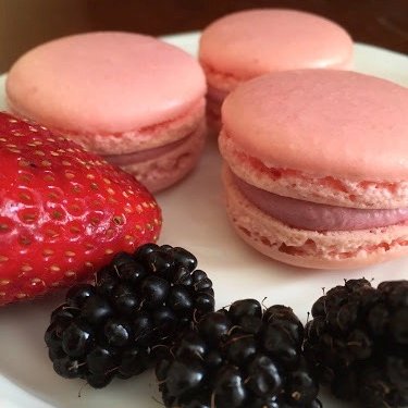 The recipe came (as always) from the fabby "Mad About Macarons" book by Jill Colonna and the shells are filled with her tutti fruiti filling. I used half strawberries and half blackberries and they are very, very delicious. By the time I got round to transferring them from fridge to freezer - half had been eaten. Ooops.