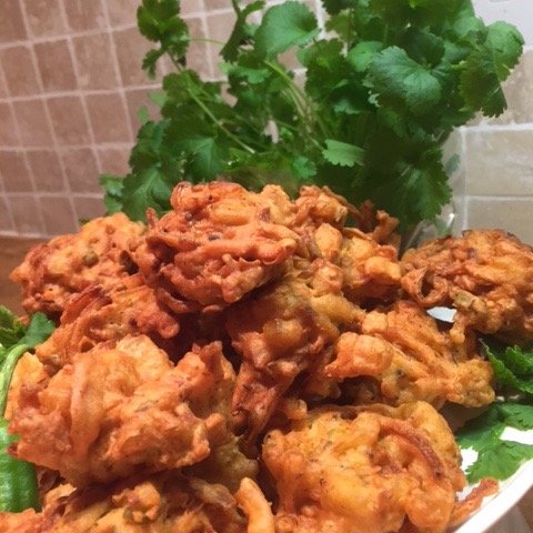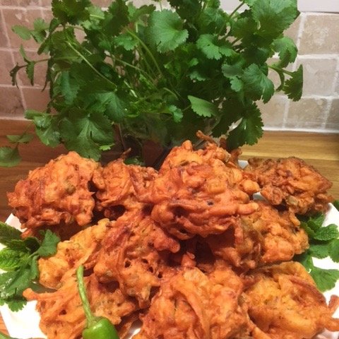 Add heaped tbsps of onion mix to the pan, a few at a time, and cook for a few mins, turning once, until they are evenly browned and crisp, about 3-4 mins. Drain on kitchen paper, sprinkle with a little salt and keep warm while you cook the remaining bhajis. Serve with the raita.